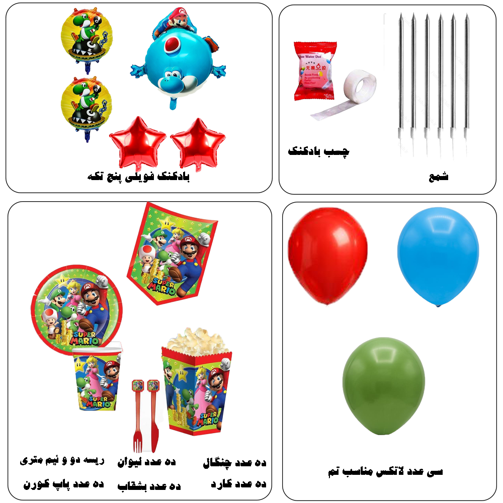 پکیج ویژه تم تولد سوپر ماریو – 100 عددی