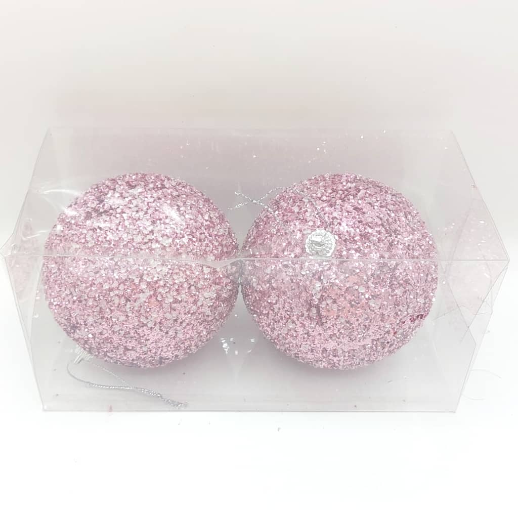 گوی صورتی ساده اکلیلی 2 عددی بزرگ (8 سانت)